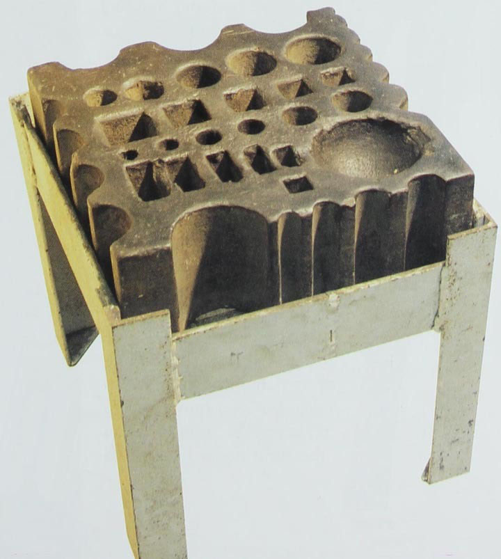 由于需要烟道,煤或焦炭炉往往会固定工作坊的布局。它的位置需要仔细考虑。使用丙烷的燃气炉,或燃烧煤油的燃油炉在通风良好的工作坊中不需要烟道,因为燃料燃烧清洁,没有有害烟雾。但应该记住,任何碳氢燃料都会产生二氧化碳,在空气供应受限的情况下还会产生一氧化碳。因此良好的通风很重要。这些炉子提供一个加热室——类似于陶工的窑——通过前后的门进入。由于它们结构相对轻便,不需要固定烟道,可以放在装有脚轮的底座上,并根据需要移动。这使得工作坊布局更加灵活,能够根据特定工作安排炉子的位置。