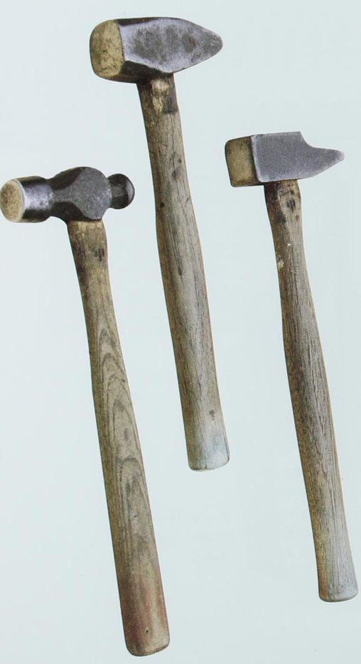 在我的书架上有一本为1980年大英博物馆”维京人”展览出版的书,其中包括一张照片,展示了一组留在十世纪挪威武器铁匠墓中的工具。那些钳子、锤子和凿子与我今天在工作坊使用的工具几乎完全相同,时隔整整一千年。