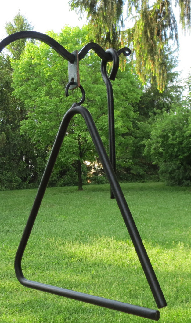 餐铃是新手铁匠可以制作的最简单的物品之一,三角形餐铃是一个很好的起点。拿一小块薄金属片。加热并将其弯成三角形。再拿另一块薄金属片,锻造出一个小铃舌(clinger)。