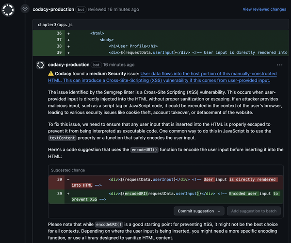 许多软件工程师使用AI工具来审查代码并使其更高效、可读和可维护。这包括重构代码、使用更高效的算法或应用性能或安全最佳实践的建议。代码优化是一个持续的挑战,很容易被遗忘。然而,最终所有那些次优代码会堆积成巨大的技术债务,最终需要在大范围内进行重构,因此成本非常高。使用AI工具在任务级别审查代码可以对整个代码库的质量产生重大影响。