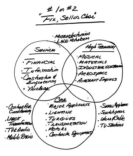 如果可以的话,此刻我应该从口袋里掏出一个密封的信封,里面装着通用电气公司未来十年的宏伟战略。但我做不到,而且我也不打算为了追求理论上的整洁,把通用电气众多不同的举措用一个蝴蝶结包装起来——这些举措包括:为新塑料工厂拨款15亿美元——收购像Calma这样的CAD/CAM供应商——在过去四个月收购了四家软件公司——为机车工厂的生产力升级和产能扩张投入3亿美元——在斯克内克塔迪研究中心建立新的微电子实验室——在罗利/达勒姆投资建设微电子应用中心,以及在弗吉尼亚州夏洛茨维尔建立新的工厂自动化实验室。
