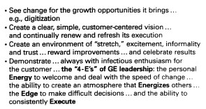 现在让我把这种思维——这种”战略不是一个冗长的行动计划,而是一个核心理念在不断变化的环境中的演进”的理念——与通用电气公司的管理联系起来。
