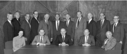 为1997年年报拍照,与副董事长保罗·弗雷斯科(左)、约翰·奥皮和吉恩·墨菲。照片由John Abbott拍摄