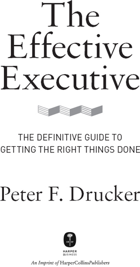 《卓有成效的管理者》版权所有 © 1967, 1985, 1996, 2002, 2006, 2017 彼得·F·德鲁克。前言版权所有 © 2017 吉姆·柯林斯。后记版权所有 © 2017 扎卡里·弗斯特。根据国际和泛美版权公约保留所有权利。通过支付所需费用,您已获得在屏幕上访问和阅读本电子书文本的非独占、不可转让权利。未经哈珀柯林斯电子书明确书面许可,不得以任何形式或任何方式(无论是现在已知的还是以后发明的电子或机械方式)复制、传输、下载、反编译、逆向工程本文本的任何部分,或将其存储或引入任何信息存储和检索系统。