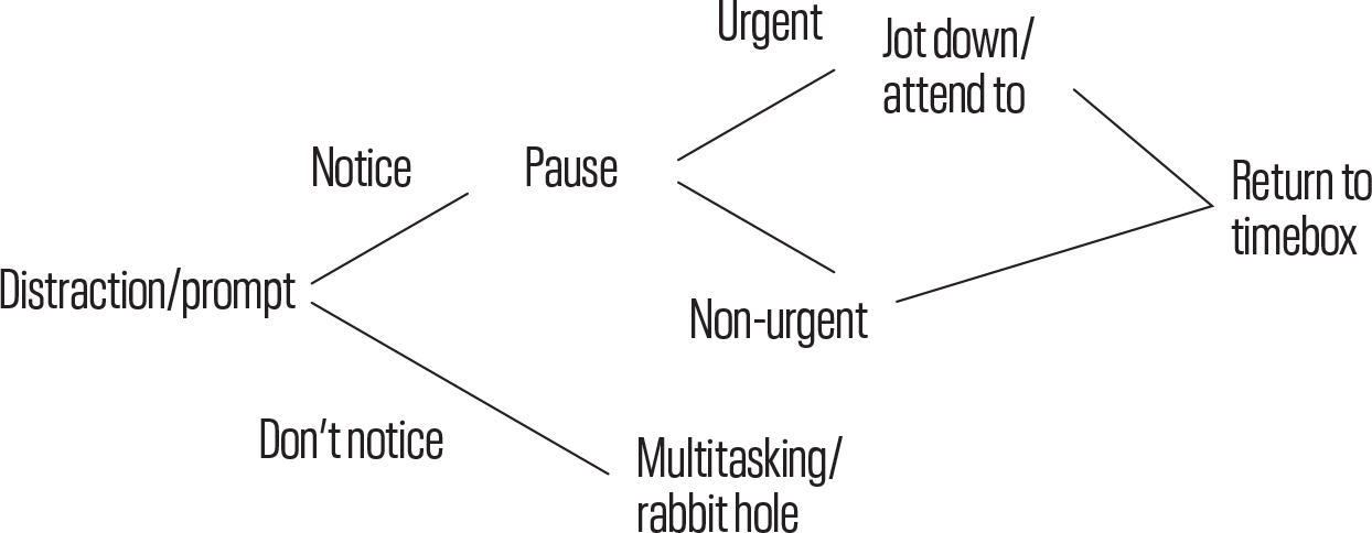 • 你会分心和偏离轨道。预期这种情况。当这种情况发生时,练习回到时间盒(回到日历),回到你原来的任务。随着经验的积累,你的分心会变得更少、持续时间更短。