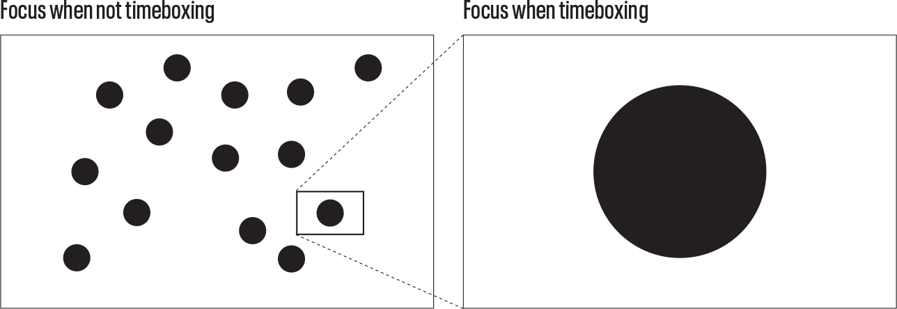 这个定义包含了这种做法最重要的元素:意图性、专注、成就、秩序、完成以及时间盒本身的创建。它还提出了一个重要观点,即我们应该且仅在有能力这样做时才进行时间装箱。我们作为文明社会制定的所有规则(法律、编码约定、家庭政策)都是在一开始、在大脑冷静和深思熟虑的时刻(通常由精心任命的委员会)制定一套决策的例子,以帮助从长远来看让生活更顺畅。Timeboxing将这一原则应用于一种特殊和具体的情况:你。