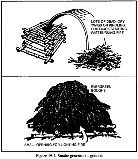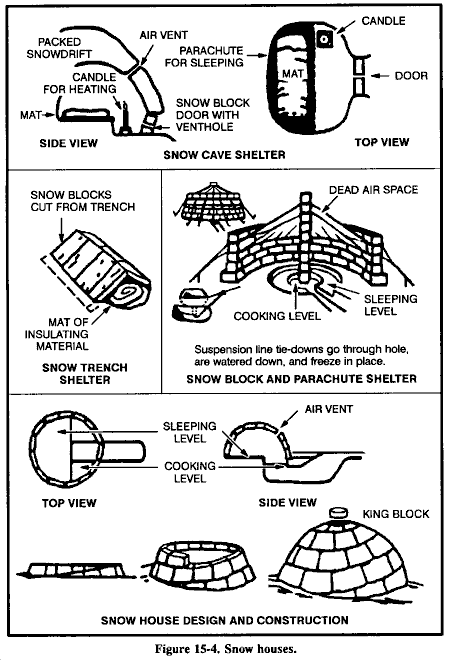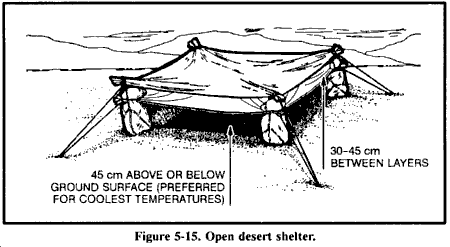 在生物污染条件下,您可以使用第5章描述的相同技术建造临时避难所。但是,您必须做出轻微改变以减少生物污染的机会。不要在地面凹陷处建造避难所。气溶胶喷雾容易在这些凹陷处聚集。避免在植被区域建造避难所,因为植被为生物病原体提供阴凉和一定程度的保护。避免在建造避难所时使用植被。将避难所入口与主导风向成90度角放置。这样的位置将限制空气传播病原体的进入,防止避难所内空气停滞。始终保持避难所清洁。