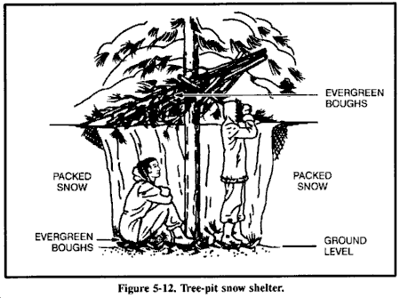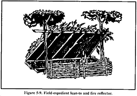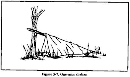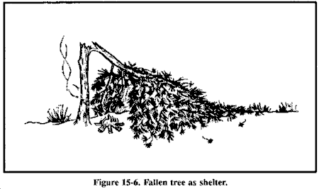 • 在可能的情况下,寻找可以改进的粗糙现有避难所。如果没有,挖掘战壕。