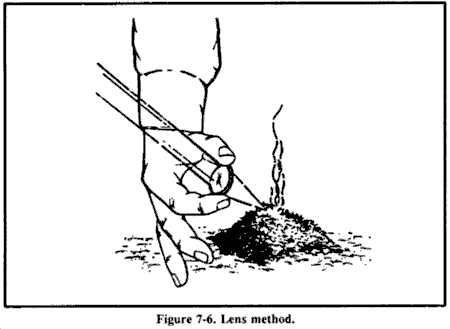 • 使用可以丢弃的树枝或其他物体清洁避难所地点的任何表面沉积物。进行这种清洁是为了从你将占用的区域清除污染材料。清洁区域应至少延伸到避难所区域外1.5米。