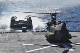 我在海自的水陆两用作战担当部队扫海队群勤务。水陆两用作战是在必要时从海上向陆上登陆部队的作战,与陆自·空自联合遂行作战。另一方面,灾害发生时,也从事利用登陆用气垫船(LCAC)等从海上向孤立被灾地区运送救援物资等活动。