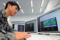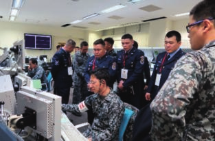 [与空自电子战部队进行意见交换的情况] 系统通信科 [非公开] [进行实技指导的笔者(最左边)]
