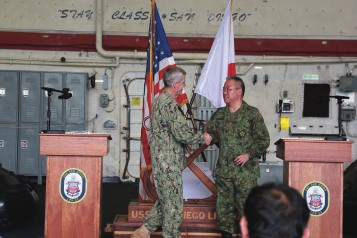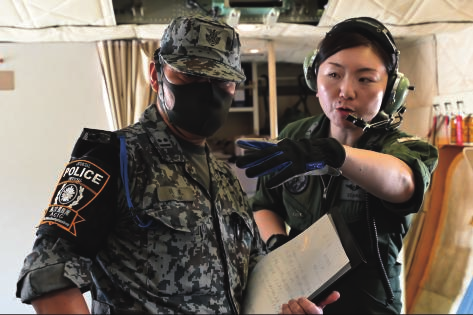 我参加了去年度实施的日美共同统合演习,实感到统合作战的重要性和多国间联合的困难。此外,在去年度美国实施的实弹射击训练中,面临与陆自的协同射击训练,切身感受到在紧密联合下进行的射击的紧张感。