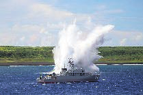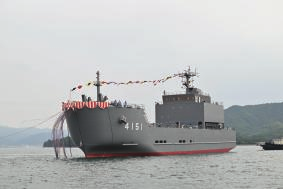基准排水量8,200t 乘员约300名 基准排水量3,900t 乘员约90名 基准排水量690t 乘员约50名 基准排水量8,900t 乘员约135名长170m 宽21.0m 长133m 宽16.3m 长67m 宽11m 长178m 宽25.8m 深12.0m 航速30kt 深9.0m 航速30kt 深5.2m 航速14kt 深17.0m 航速22kt 高性能20mm机关炮 SeaRAM VLS装置 SSM装置 20毫米遥控机关炮 高性能20mm机关炮 VLS装置 鱼雷发射管 62口径5英寸炮 扫雷装置一套 运输用气垫艇 SSM装置 62口径5英寸炮 简易型水雷敷设装置 〈概要〉 〈概要〉巡逻直升机 〈概要〉 具有高水雷搜索能力的扫雷舰 设有对受灾者的医疗、补给设备等,可多方面活用的运输舰