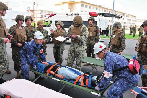 去年参加印度太平洋方面派遣训练时,访问了塔希提和夏威夷,与他国军队一起进行了两用战和灾害派遣训练。