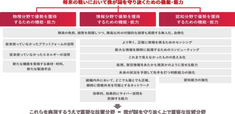 具体而言,在强化将成为未来核心的Stand-Off防卫能力和统合防空导弹防卫能力的同时,致力于无人资产防卫能力、领域横断作战能力、指挥统制・情报相关功能的强化。此外,机动展开能力和持续性・坚韧性的强化也很重要,正在加速推进装备品可动率的提高和弹药・燃料的确保、防卫设施坚韧化的投资。