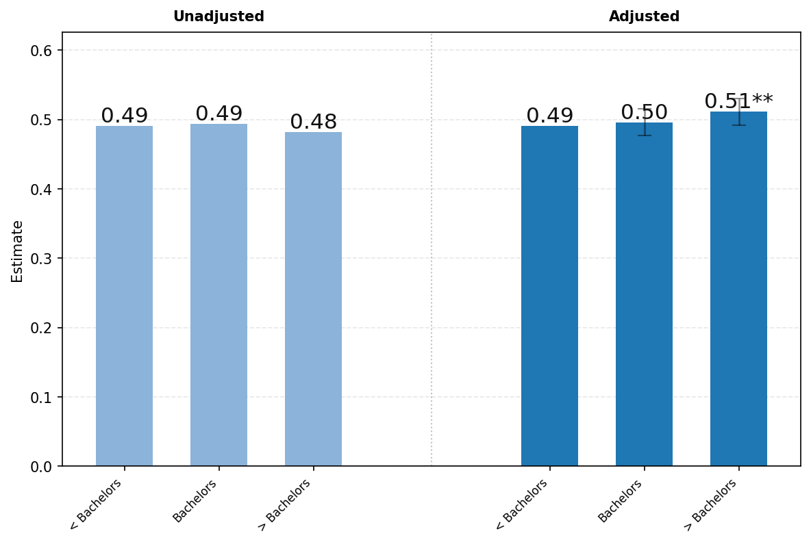 通过数据洁净室保护隐私。 我们从未直接访问用户级人口统计记录。所有就业数据分析都在安全DCR内独家执行,该DCR仅允许对独立持有的数据集进行预先批准的聚合计算;任何一方都无法查看或导出另一方的底层记录。我们使用严格协议管理DCR:要执行任何涉及外部人口统计数据的查询,我们首先从6名共同作者组成的委员会获得明确批准,然后将笔记本提交给我们的数据合作伙伴审批;只有获得批准的笔记本才能在DCR中运行(见图[2])。