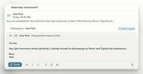 使用邮件助手,你可以让Perplexity处理你的收件箱——分类邮件、起草回复和跟进——这样每次收到提醒时你就不会失去专注。
